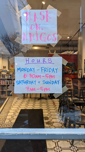 The coffee is fine, but what is up with the hours? Really closing at 8pm on Friday and 7pm on Saturday nights???. They should at least be open until 11pm. Many a night I have a hankering for a cappacino or latte, but am still missing the late night kaffee houses in Berlin, where 10pm is when the poetry readings or open mics just get started.