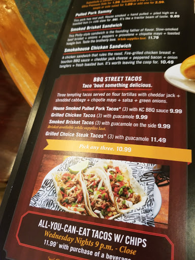 Shouldnt the people cooking the food in the kitchen be familiar with their own damn menu? I ordered the smoke stack burger. The first burger they brought out only had one pattie, certainly not the smoke stack. The second burger they brought out had 3 patties like it was supposed to but thats about as far as it went towards being the smoke stack. It was just a big bacon cheese burger with some onion straws No onion rings No slaw No pulled pork Nothing that would make it remotely near what I ordered. I just had then take it off the bill and left without eating as my family and 2 small children had long since finished eating by the time they got my incorrectly remade burger out and I left without eating since my kids were not only getting restless but needed to get home to bed for school in the morning. It would have been real nice to have been able to eat with my family and at moderately high prices, I really dont think its too much to ask to make sure the cooks actually know WTF theyre doing.