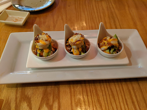 The midwest is not known for having good seafood for obvious reasons. But this little place on main street has a great surprise in how fresh the fish can be. I had the little tokyo roll and loved it. Everything was great, the service was great, food was great, the decor was great. You could tell it was going to be a great place because of how many different rolls they have on the menu. Very knowledgeable chef!