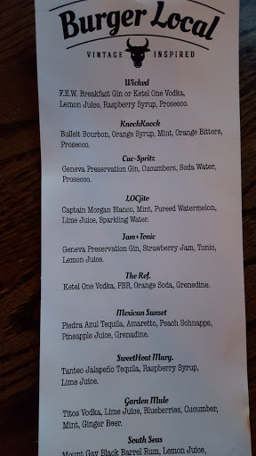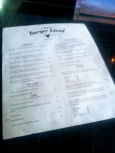 Ive been around a long time and had a lot of burgers, but Burger Local has what may have been the best restaurant burger ever. No joke, cooked perfectly, tasted fantastic. Big Burger, wasnt sure if I could eat it all but it went down real easy. The sides were equally good, without stealing the spotlight. My wife had the onion rings, which are big sweet onions with thick batter and deep fried to a golden just crispy enough without over cooking. Served with Chipotle ranch for dipping yum. I had the salad, served in a large cup, but packed with spring greens, chopped veggies and just the right amount of dressing. Atmosphere was clean and good, a tad on the loud side which is normal for a sports style pub. Service was phenomenal. The value for the price is very fair, Ive spent more money at lesser establishments. Its not cheap here, but you get a lot of bang for the buck. They had many attractive menu items, we had to start with the burger though, since after all... its name is Burger Local. In summary, Im looking forward to going again and my advice to ownership or management, dont change a thing and youll be around for a long time.