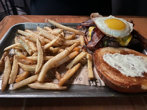 We like Burger Local, they have great burgers. We had fried pickles which usually are super - these had structural issues with the crunchy crush and the piping hot pickles. Maybe thats inherent to fried pickles, idk. I also had onion rings which were slightly dark. The onions were great but the batter had that slight bitter edge. My main was the tacos of the day - al pastor. Very good and the right size (tacos were about 3" across). The lady had the hangover helper. We couldnt finish it. All in all a good meal, well be coming back.