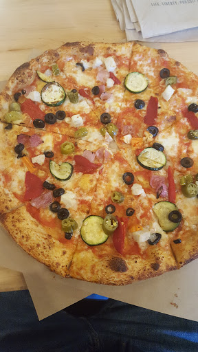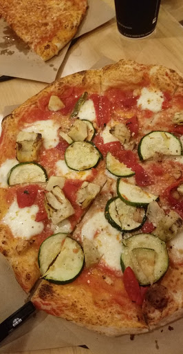 Great easy eatery with delicious pizza. Its pizza after the Chipotle model. You start with a pizza crust and add toppings as you go down the bar. Then they toss it in the oven while you pay, get drinks, and nab a table. They typically call your name after five or ten minutes. Thin crust pizza on a handmade crust. I dont think Ive ever had a bad pie here, and we go quite frequently. They also have beer and wine and organic milk boxes for the kids. They get pretty busy at dinner time, and finding a table can be difficult. Thankfully, the service and the food are both quick and tables seem to usually turn over pretty quickly.