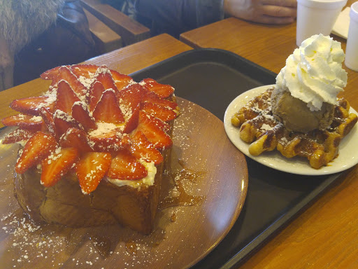 Normally I love this place: its a bit pricey but the atmosphere is great and the food/drinks are really good. The photo is what I had recently, the strawberry and cheese honey bread. This stuff is HUGE. Split this with someone. The problem? The service was AWFUL. There were two people behind the counter, both of whom ignored me. The employee who took my order took it with a LOT of attitude and completely messed up my name. The food and drink took about fifteen minutes to make. The friend I split the bread with said the last time she was there, it took almost twenty minutes for them to make her drinks - and there were no other customers. It was the same employee that helped her. Ive been here many a time before and loved it, especially in the winter because their hot drinks are awesome. Its just the service wasnt great this time, or the time my friend went.