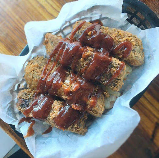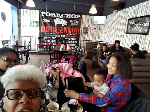 The porkchop was fried and seasoned to perfection! Delicious. The bacon maple glazed donuts were ok, the twist of bacon was a bit much....but still gets a thumb up. The platter was only enough for one, and it costs as much as a platter from Famous Daves, which easily feeds 2-3. I was told that the bread pudding was a bit dry, but the flavor was there. Reason for three stars? A little pricey for location. A little pricey, in general....and I am usually not one who takes a whole lot of issue with cost. Restrooms were not tidy at all and are positioned awkwardly. I will probably need to try this place again, just to be fair.....maybe they need to get some kinks out of the chain. Has great potential & brings a bit of excitement to the area! Definitely could use some tweaking.