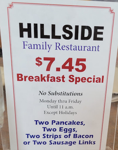 Was in the area on biz and hit the Hillside for dinner. Excellent menu, plenty of choices, well prepared and friendly service. Its a pleasure to find a place like this for a good sit-down meal instead of the fry pits and chains. A good value and worth a stop if youre nearby.