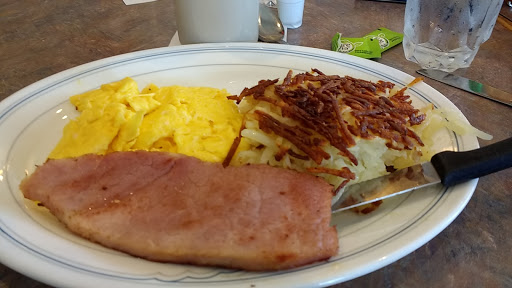 Pleasant atmosphere, have eaten here a couple times. This time bite out a nice chink of plastic in my western omelette. Omelette was replaced but I wont be returning.
