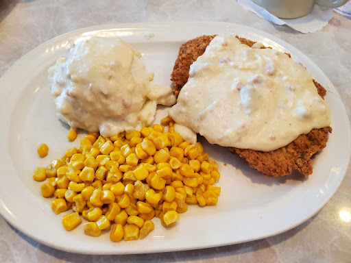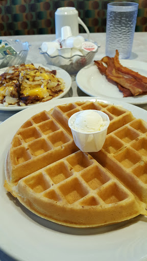 The food here has been very good quality. Some soups arent as good. Will serve breakfast or lunch any time. Plenty of room at booths and tables, accessible for disabled. There is also a counter with seats for single guests. Great steak and eggs and skillets! Coffee is good.