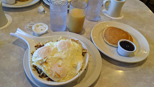 Went here for breakfast with my wife as neither of us had ever been before. Waitress was less than stellar. Spilled coffee on the table every time she filled a cup. She stopped at our table twice and started to give us the plates of food, only to say Oh wait, thats not yours". She didnt ask me which potato I wanted with my omelette. She did ask me which type of toast I wanted, but brought out the wrong type anyway. I didnt say anything and ate it because I was starving. My omelette was okay I guess. They had put slices of American cheese in it which was just too much cheese and not all that appetizing. My hash browns were under cooked and had little taste to them. My wife said her skillet was okay, but nothing special. Overall just an extremely underwhelming visit and not a place well visit again. Many better options out there for the same cost and much better service.
