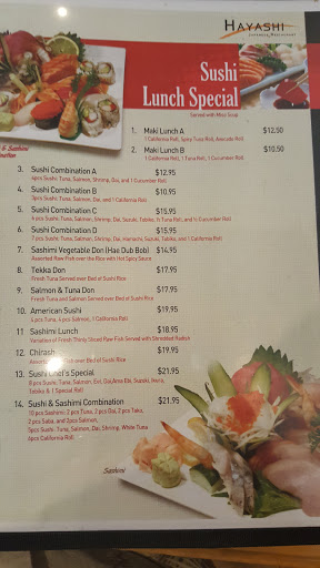 They have real Japanese food. Yes, the service is great and all, but the food is what really matters. The other restaurants around here have watered down miso soup, donburi on plates, and old, weak wasabi. Hayashi actually makes Japanese food like it should be made.