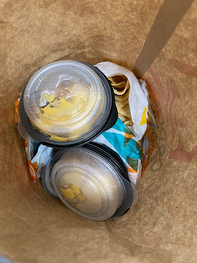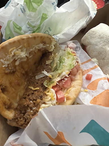 We were the only customers in the drive-thru and we waited at the drive-thru window for 10 minutes to get a #11 which is 3 Fiery Tacos with just meat and cheese only, a large lemonade and 2 orders of cinnamon twists. We got home with my sons order and it was wrong. His tacos were just the plain Doritos kind and they were stale plus we were missing one of our cinnamon twists. Now the killer is look at the pictures and see the tiny amount of meat in his tacos! Oh yeah for napkins they put 2 of their hand washing paper towels in our bag!