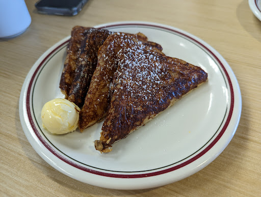 Stained seats, dirt on bathroom walls and floor, horrible coffee (watery) and my eggs yolks were stiff and green when I ordered basted easy (runny). Waitress was nice and we were quick to be seated. Try a different one in the area. Oh, and my plate was sharp due to broken chips on the edges. :(