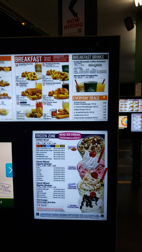 Typical Sonic. Servers are usually pretty friendly and fast. Happy hour is the time to go for reduced priced drinks. Very creative drink options
