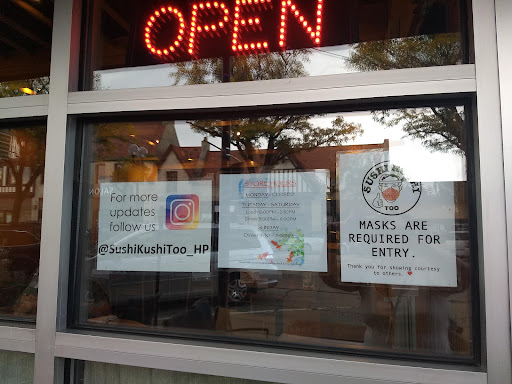 Brittle Hot Tuna is a family favorite. Its a bit spicy, though not too spicy. It has a fresh flavor and nice crunch. Well worth trying. The rolls and other items are consistently good. Theres chicken on a stick for our non-sushi eater. We enjoy Sushi Kushi Too whether we dine in there or carry out.