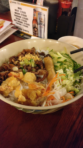 EDIT: I have dropped my rating from 5 to 3 stars primarily because the service had become so slow weve stopped going. The food is still good but whether dining in or carrying out it always took an extremely long time to get food. Even when I would call in an order and theyd say "20 minutes", Id arrive 20 minutes later and then wait 30 more minutes. So I can only go there when I have plenty of time to kill, which is rare. -- My extended family has been eating here a lot since it opened, but I had not made it a point to join them thus far. I am not a huge fan of Pho, while it can be tasty I am usually not in the mood for soup as a meal. So when my family finally wanted to go there while I happened to be with them, I wasnt overjoyed but was happy to give it a shot. Luckily they do have a number of other dishes to choose from. There is a small selection of dishes from various Asian traditions, though none of my usual favorites happened to be on the list. I decided on a Mongolian Beef lunch special, which included a choice of steamed or fried rice, egg drop soup, and an egg roll. The bowl of soup was delicious, the egg roll also good. The portion size for the entree was quite large for a $6 special, though comparable in size to other such specials. What was not comparable to other restaurants was the quality and taste! This was, by far, one of the most perfect Asian dishes Ive ever eaten, and Im not usually a fan of Mongolian Beef. The meat was so incredibly tender and flavorful, and both kinds of onions were exploding with flavor (literally, I have never had a juicy onion like these). I normally save large portions like this for a second meal but I simply couldnt stop eating, it was so perfect and I did not want to let it go to waste being microwaved another day. Im excited to have a great new affordable restaurant to frequent. If I have one complaint its that this dish is SO good I may never be able to bring myself to try anything else.