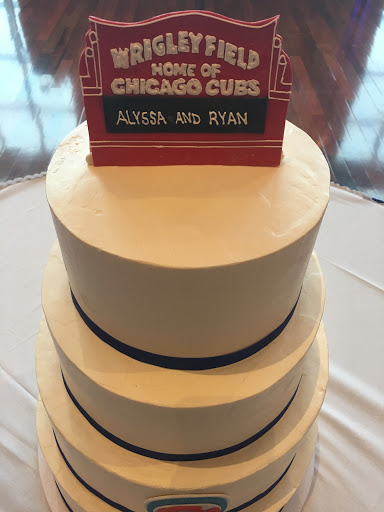 Martha baked the cake for our May 6th wedding. We met with Martha several months before our wedding, and she gave us a thorough taste testing. All of their cake and fillings are amazing, and you cant go wrong with any options! In the end, we could. It decide, and Martha was flexible with us- allowing us to do two flavors for just a small price addition. We had vanilla cake with chocolate and strawberries for one filling and cream cheese and lemon for the second filling. We had a 5 tier cake for 250 guests, so each tier alternated with those two filling options. The cake was fluffy and moist, and the buttercream outside so smooth and professionally done with our design choice. When we chose our cake, Martha explained how she uses real butter for the buttercream outside. I love that it is natural, and she mentioned that it can tend to be a bit yellow because of that. Honestly, while we werent torn apart about not having a true white cake, the cake did turn out much more white than I was imagining. It was not yellow at all, I would say it was even more white than my ivory wedding dress. We purchased a gold wedding topper with our name on it, and Martha placed this perfectly. The cake was beautiful, and I couldnt have imagined any other cake. What a great, local business. I loved being able to do my cake tasting, and especially being that it was with owner Martha. Truly an authentic experience with beautiful follow- through on the wedding day.