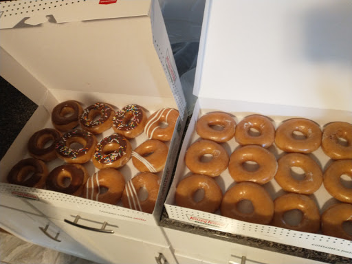 The best customer service!!! I went to Krispy Kreme this morning for a dozen original glazed doughnuts I went through the drive through, after receiving the doughnuts I noticed they were cold (I went this morning because the sign was on that said hot doughnuts) went back through the drive through, and they told me they would have a hot batch in 4 minutes, after waiting the 4 minutes the manager told me that that entire batch was bad, so she gave me the option of waiting another 20 minutes for hot ones or getting another dozen free. I waited but she was so kind a gave me the hot ones and the cold ones. I will right a formal letter for earetha (I hope I spelled her name right). She is a great manager.