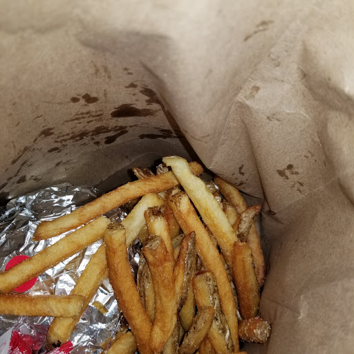 Greasy burgers and unevenly cooked fries - some soggy, some burnt. One burger well done and the other medium rare, even though the sign says all meat is cooked well. The well burger was tasty but very greasy. The manager was awesome about the under cooked burger.