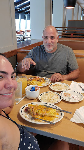 First time coming here. Employees are too loud and obnoxious. Playing around in front of the Customer while we eat. Talking out loud in their kitchen that we could hear everything. Complaining to eachother about co-workers and damn cursing loudly saying go the hell out of here to eachother. Whole place was quiet and we could not even enjoy our food. I asked for a cup of water and the waitress kept coughing in her hand, ✋, she left and i heard her scooping ice into the glass then filling it with water, and the same time still coughing! she brought my water with same hand she coughed on. !Disgusting! My fiance order the chicken fajita omelette, and had couple of small pieces of Chicken, all eggs...and then nothing they can do about it.. Never Coming Back Here!! Worst experience ever!!!