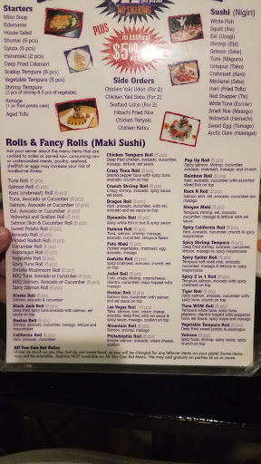 Good food, terrible service. We went for my husbands bday and long story short he got very sick before our food came, he tried to eat and immediately knew we had to leave. Bc we had ordered all you can eat, the waiter told us they charge for "leftovers". It should have been $21/person....I ended up paying $82. The owner (Im guessing) came over and started telling me that she could just charge us regular price for each roll plus our drinks and it would be $0.40 cheaper than if she charged us the normal "leftover" price. Im incredibly disappointed in the poor customer service and the huge lack of understanding. She literally looked at me like I was going to sit there and eat all of the food in the restaurant by myself while my husband was in the car in pain. Not to mention it took literally 15 minutes for her to figure out how much she wanted to charge me. Ill definitely never be back here and I wouldnt recommend anyone go there ever.