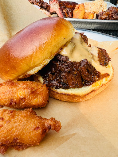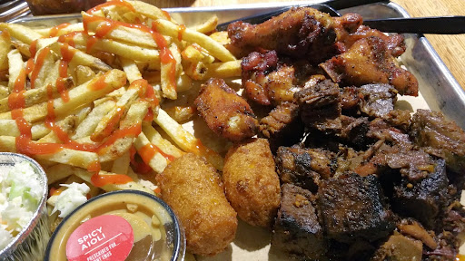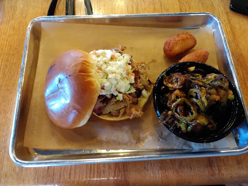 What a disappointment this was. I was hoping based upon the ratings that this is actually good barbecue up north. I guess you guys dont get down to the South and have real barbecue. When you have to slather your meats in sauce to hide the fact that its got so much fat on it theres a problem. The burnt ends taste like chopped up Slim Jims pressed together. The brisket was over half fat on each slice. With that being said the spicy fries and hush puppies were phenomenal. Great job on those sides.