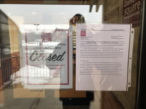 Love Bakers Square in Liberty ville. Food is very good, not your standard fare. I had an artichoke baguette, blue cheese strawberry salad and pie. All for 9.99. They have regular food also Great food and great prices