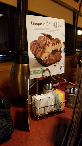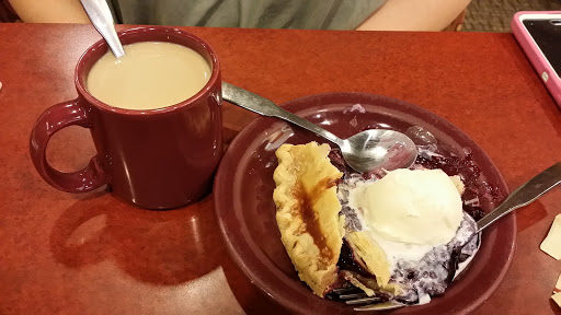 Good place to stop and eat. Open late and nice and fast. Food is okay, typical diner food. REALLY GOOD PIE SELECTION.