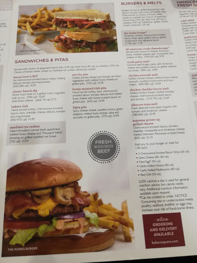 I love Bakers square because I love the pie. The food is okay, but the menu is changing almost every month, so be prepared for a new dish.