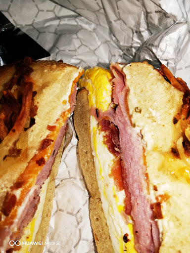 Good bagels, basic sandwiches Fast service. Decent fast food. Try the challah bread sandwiches. It has an area to sit down in and also, if the weather is nice, someplace outside to sit and enjoy the sun.
