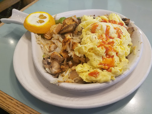 1 star is for penny pinching owner whos chefs cannot make cheesy eggs to save their rears. The rest of our food was good, the server was better, the eggs we ordered ( cheesy eggs) were done terrible A square piece of kraft single on top of eggs scrambled, Not a big deal, the place was busy so we peeled off the cheese ( in 1 piece ) and went on w/ breakfast. The owner asked how breakfast was when paying ---> I told her good except for the terrible cheese on the eggs, 10 minutes later after arguing with me (over taking the $1 off my bill ** which was going to the server anyway**, talking to the chef & our server & getting to the bottom of this mystery which i was done waiting for this ridiculous outcome ) WE LEFT after we were out the door she comes out to tell me she will give me my dollar back PAHLEASE give it to our waitress she deserves it NOT YOU, & GUESS WHAT ? were never coming back enjoy your extra dollar you can go buy a whole pack of kraft singles for that . penny pincher
