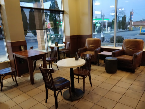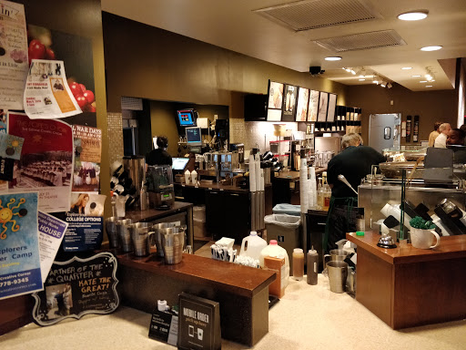 Of all the local Starbucks, this is my hands-down favorite. Unlike far too many locations, this one has a nice big space "in back". There are two tables back there, big enough to seat six to eight strangers or acquaintances or ten to twelve friends, and its a perfect place to study with friends or have a meeting. Ive not used them, but there are also two big white boards. Apparently you can reserve one of both of those tables, at least in the evenings. (I dont know about if you can do so in the daytime - Ive only seen notes on the boards referencing evening reservations.) Hands down though, the best part of this location is the staff. They are *so* friendly and helpful and funny.