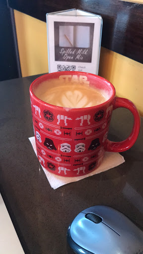 Good coffee & espresso, which is all too rare. A nice mix of flavors & syrups if thats your thing. Decent baked goods and work local artists on the walls. Nice place to kill some time.