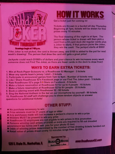 This place is pretty legit. They boast a decent menu with good staff. Overall, this restaurant is a nice addition to Manhattan. I have been here twice for dinner and once for lunch thus far. The two dinner experiences were completely different; the first time was with their very limited grand opening menu and the 2nd time was months later with a more robust menu. Both times boasted fantastic food. The wait time was a little slow, but it was a packed house (especially in the bar area). Me and my familys main gripe with this place was the lack of food before the main meal. A nice addition would be soup, salad, or some of those delicious Kirbys Bakery rolls before your meal (especially when the place is packed/wait for food is longer). My girlfriend and I also visited for lunch, which was a pleasant experience. We were the only people there, and the prices and food were both amazing! Most items were $4.99-$6.99, which included a side (and included soup for me too!) I have yet to try breakfast, but I am sure I will soon. Ultimately, this hole-in-the-wall joint on Route 52 is worth a stop.