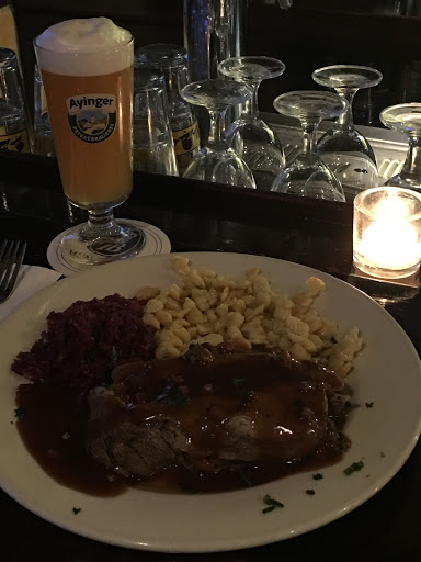 Breakfast menu was a little limited but what was listed was wonderful. I enjoyed the Bavarian breakfast for $9.99 and added an egg for $1.50. It came with a weiss beer, 2 wursts, and a gigantic soft pretzel. where else can you get breakfast that comes with beer? Hubby got biscuits and gravy, all from scratch.