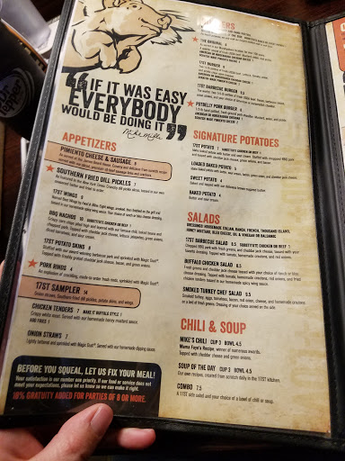 Staying at the Hilton in Marion and asked the young lady at the desk for referrals on steak, Italian or BarBQue places to go to here in town and she recommended this place which is just a short walk away. (Track shoes for the 5:30 traffic are a necessity.) Great atmosphere, food is well above avarage and the 1800 Marguerita was done to perfection. Amy our server was very attentive and on the ball so would recommend her as well. I chose the prime rib blackened and it was a supurb cut of meat and my side was the Idaho potato with sour cream and butter no other side was needed. The wife had beef brisket and again done to perfection sides of - 17th Street baked beans and coleslaw. While the meal and baked beans were to her liking not so much on the coleslaw. Topped off the meal with the Deluxe Chocolate Brownie with Praline Sauce and that was like eating heavenly chocolate covered chocolate with the most delicious topping of Praline. All thumbs up here probably the best brownie my wife and I have ever had. Great place if you are in town and fantastic atmosphere.