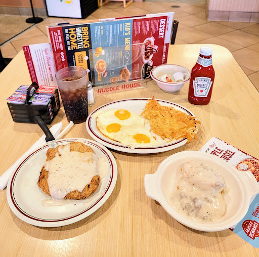 Sunday 1230pm - after our visit we nicknamed our male waiter "turtle" - he had no sense of urgency to wait on us, and we never saw a smile on his face. He never asked how our drinks were doing, how the food was, or if he could away our plates. Food was good and price was fair. We did finally get a coffee refill from a roaming waitress. If I return Ill see if I can get a different person to wait on us. Huddle House may want to look at waiter staff training as a priority.
