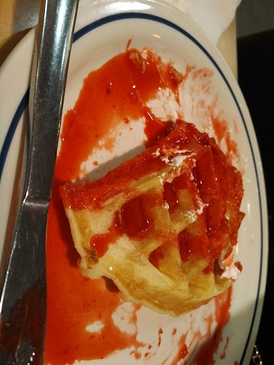 Came here for something quick with Friends...no hot tea bags, cold waffles, no salads, bleu cheese dressing ( but you do have bleu cheese for their burger). Food took too long and restaurant is not aesthically pleasing, needs cleaning. Waitress was overworked and you could tell. Service was slow...rest of food was average...not a goid experience. NEVER AGAIN! Matteson, youre tripping. Demand more for your residents! HOT GARBAGE according to one of my companions.