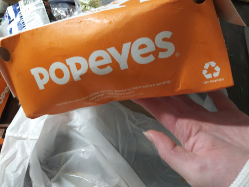 Typical Popeyes food. The exit is only a one way so you need to drive around to get back on the road.
