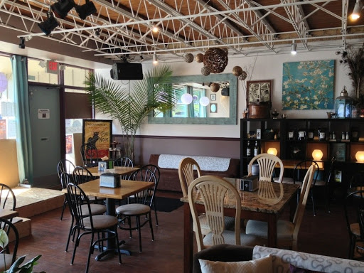 I am, what the owner considers, a regular by now. Every once in a while when Im stressed out or I feel the need for a good cup a Tea I will stop here after school or during the summer. The staff is incredibly friendly. They are very social people and definitely aim for you to have the best experience at the cafe. The food there has great quality to it. The sandwiches always have fresh bread and are healthy. NOW THE TEA. GET THE TEA. I may be saying this because I am a tea addict, BUT GET THE TEA. There are so many teas, so many. Each amazing. They taste wonderful whether iced or hot and they are indeed relaxing. As for the coffee YAS! It is great. Always need it when running low on steam. As for environment, RELAXING. The local Starbucks is always crowded and a bit hectic. This is a little more my speed. There is always a chair open for you. There is also a nice lounging area towards the left side if you need the relaxation. Also THEY HAVE BOOKS!!! Nice to look at when looking for my next book adventure. There are chairs by the window for if you are doing homework or research... however one time i saw a guy steal a lily from the pot across the street... ANYWAY, extremely lovely, all welcome. HOWEVER, you do have to wait patiently when you order. Perfection takes time :) and that is okay.