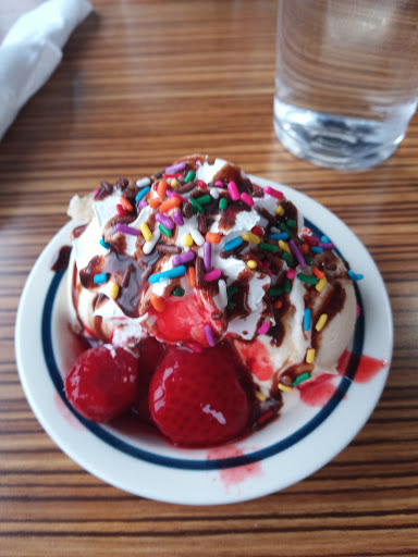 IHOP is has very good pancakes and becan and sausage go there and youll want to keep on coming every day
