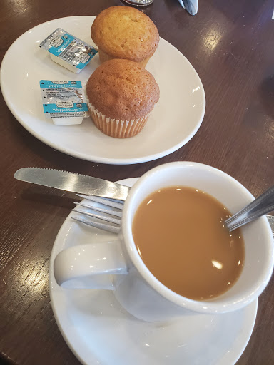 Service was slow. S L O W. Water cups were dirty- not just the ones at our table but we could see the the dirtiness of the water cups on the table next to us. My food- the prime rib hash arrived to the table barely lukewarm and the portion size was extremely small. My partners food was not what he ordered, which was the chopped steak- as rare as possible. It came to the table like a hockey puck. He also ordered the loaded potatoes, which he did not receive and when the bill came, we were charged for it and the server did not even notice/care. What was good were those muffins they bring to the table. All together over $30 for a very lackluster breakfast. We will not be returning.