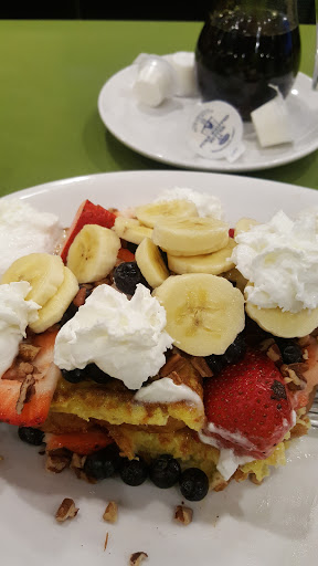 The food portions are huge and the cost wasnt that bad. The food also tasted good. I had the Kappys Benedict which the waiter suggested to get the extras on the potatoe hash..was so tasty.. And my friend had Kappys fruit Crepes (loaded with fruit. They do not skimp) YUM!! Very friendly and timely service despite Sunday crowds. Well worth the visit.