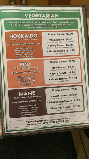 Very good Japanese style ramen served in misoya broth. My favorite is the Kome Misoya Cha-Shu Ramen which features a rich misoya broth, slices of tender and flavorful grilled pork roast, and vegetables. The addition of some fried chicken, shrimp, and a misoya scented egg make this a perfect bowl in my opinion The prices are reasonable with bowls of ramen starting at $8.95 and going up from there depending on what all you want in it. The staff is friendly and welcoming. There is sometimes a wait to get seated but they have a sign in sheet that you fill in as you arrive and they try to seat groups in a first come first served fashion. They have tables available for groups and also have a counter available for seating as well.