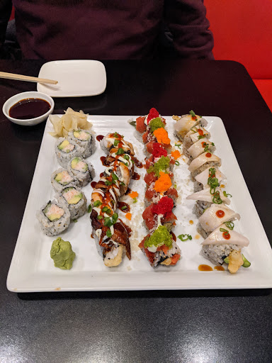 Let me start by saying that this was worst sushi I have ever had. The fish felt like it was stored in a freezer for a week and then put in a fridge for about another day. After that, it was rolled together to make a terrible, tasteless meal. The service was acceptable and the receptionist and waiter were nice. We were there for lunch so the tacky trance music playing at 90 decibels did not make for a good atmosphere. I guess if you want to go for a club atmosphere, it would be good for you. We didnt have a chef cook in front of us, so I cant comment on that, but overall this was a terrible dining experience.