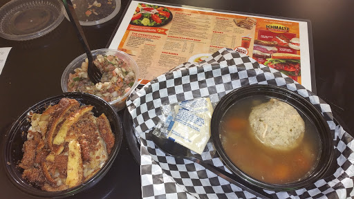 Schmaltz Deli makes an Awesome Pastrami Sandwich with Matzo Ball Soup. Sandwiches a big and with great flavor. They have a huge selection of great sandwiches and other deli foods. The staff is friendly and the atmosphere is very laid back. Its a great place to eat a fantastic meal and not feel rushed. Next time Im there, Im going to try the brisket sandwich. Overstuffed!!! This review is making me hungry.