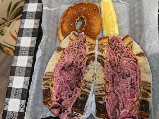 I really like this kosher delicatessen for its variety of sandwiches, bakery, and atmosphere. The stuffed sandwich option provides a hefty portion of meat on a sandwich, but I usually opt for the half stuffed. A very small complaint is that there arent many healthy food options that I like, but that does not stop me from coming back often.