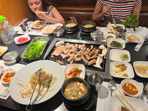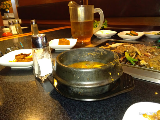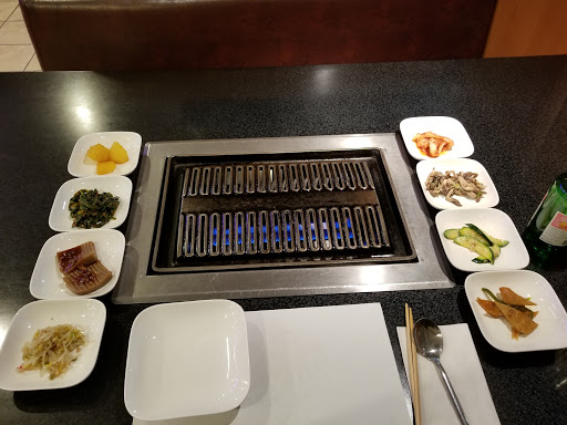 This is my goto Korean BBQ spot, since its right around the corner from H-Mart and I like to stop in there for snacks, marinades, and music CDs. Its a large restaurant and youll be seated quickly. BBQ is in-table, so youll get some char. The kalbi is very good, dak kalbi is so-so. Id recommend their made-to-order menu if youre not a fan of cooking, the bulgogi is where its at! Its on the pricier side, but not extremely expensive. You do have to order two cuts of meat if youre doing table BBQ, but youre going there with a couple of friends anyway.