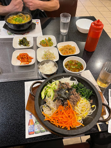 The homemade bean soup is rich and delicious. The bibimbop in the hot stone bowl gives delightfully crispy rice. Very nice overall.