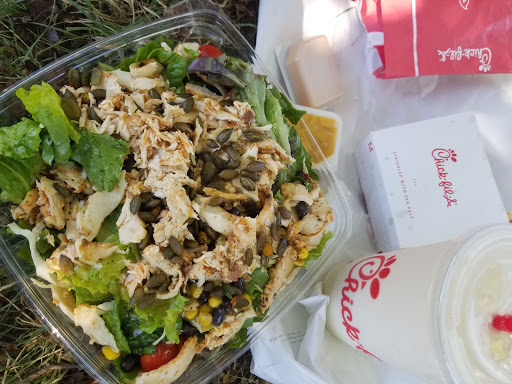 Food and atmosphere is consistent with overall Chick-fil-A experience. The service was a bit slow as they only had one cashier who was partially filling orders as well as taking them. I pleasantly discovered the healthier options during this visit - grilled chicken, superfood (kale salad) and water which served as a healthier alternative during a recent road trip.