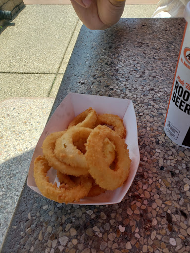The chili cheese dog was disappointing. The chili was a bit... sour.... I guess is the word. Not that it had gone bad, but I have tasted that sort before and I dont care for that "recipe". But that wasnt really the main reason for my disappointment. The cheese was a pile of shredded cheddar sitting on top. Thats not what I was expecting as the menu picture showed melted cheese on the chili dog. And shredded cheese is Ok with me, but a proper cheese dog should have melted cheese... Reading what I just wrote, I think I sound like a spoiled brat crying about the cheese. "My cheese wasnt melted! Boo Hoo! " Yeah, well thats what it was, I guess. So, getting over that, the cheese curds are awesome! And of course the root beer! You can NOT get better root beer anywhere else. Served up in an iced mug, they dont water it down by putting ice IN the mug. They have signs that day that its made right there but I didnt ask if that was true. And I dont care! Its fantastic! If youre out riding your bike and you want something other than water, come here and get a mug full of the best damn root beer around!