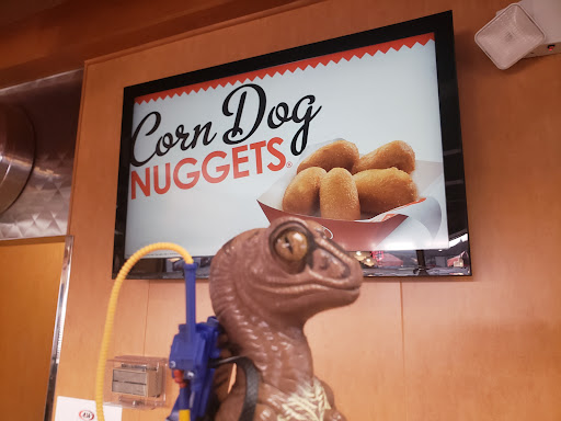 Everyday traditional American fast food, dogs, burgers, chilly dogs. Good location, open parking. Good food for fast food.